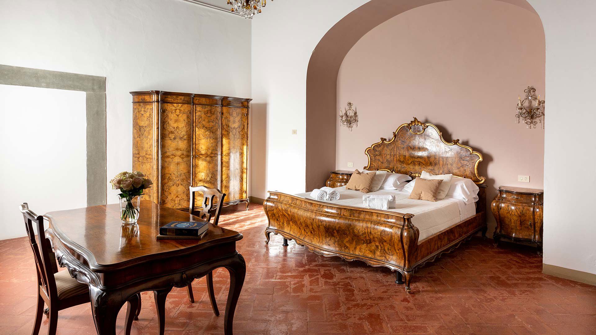Gli appartamenti possono ospitare da 2 a 4 persone, risultando ideali sia per coppie sia per famiglie con bambini. Offrono un’atmosfera elegante e confortevole, con arredi curati in stile classico, mobili d’epoca, pavimenti in cotto e soffitti a volta o con travi a vista.