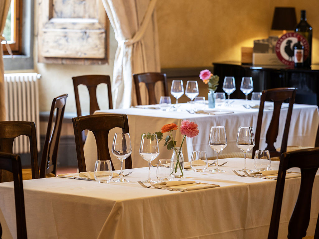 The wine list features the award-winning labels of Castello Vicchiomaggio, produced by the winery.